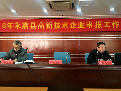 12月20日下午,2018年永嘉县高新技术企业申报工作交流会在永嘉科技大楼七楼成功召开,该会议由永嘉县科技开发服务中心主办、永嘉县荣信科技有限公司、永嘉海天会计师事务所承办。来自50多家企业80多位企业负责人、技术骨干、财务总监等参加了此次交流会。会议由永嘉县科技开发服务中心主任、县科技局党组成员李国算致词,荣信科技胡陈春总经理主持。