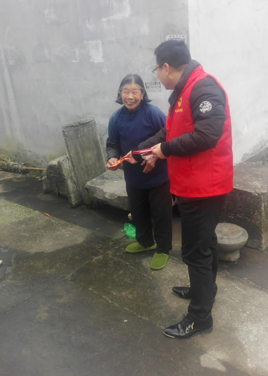 春节将至,凛冽的寒风阻拦不住送关怀的脚步,深冬的严寒冷却不了送温暖的爱心。为让马岙村80周岁以上老人及困难村民过上一个温馨、愉快的春节,切实感受到全村人民对他们的关心和温暖,春节前夕,荣信科技胡陈春参加马岙爱心驿站志愿者开展年终走访慰问活动,为本村56位80岁以上老人和11家困难村民送上爱心红包,送去诚挚的关怀和新春的祝福。