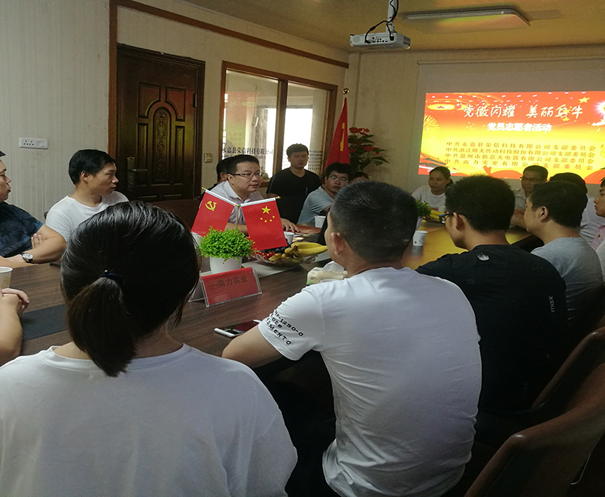 8月18日,永嘉县荣信科技有限公司党支部联合浙江顺天传动科技股份有限公司党支部、温州市新蓝天电器有限公司党支部和南力实业有限公司党支部共同开展了一个别俱一格的"主题党日"活动。
